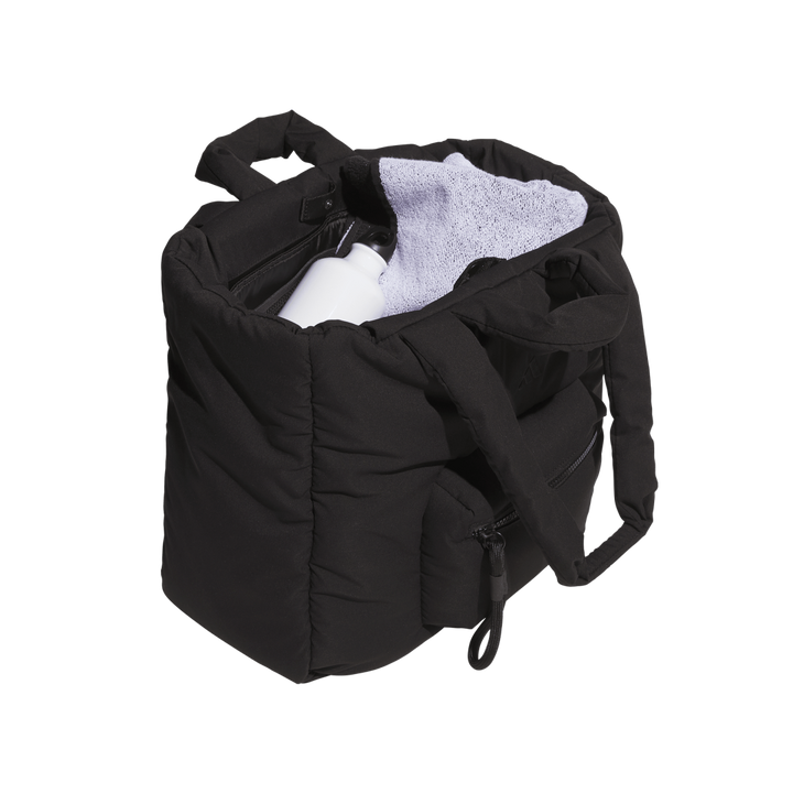 Esta bolsa tote de adidas te permite llevar tus objetos personales con estilo. El diseño acolchado le da un aspecto mullido y una sensación suave, y su confección de poliéster resistente al desgaste significa que está hecha para durar. Con un espacioso compartimento principal y bolsillos más pequeños para las llaves y el teléfono, tendrás espacio para todo.