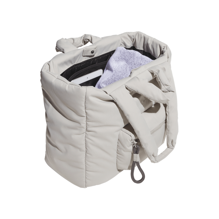 Esta bolsa tote de adidas te permite llevar tus objetos personales con estilo. El diseño acolchado le da un aspecto mullido y una sensación suave, y su confección de poliéster resistente al desgaste significa que está hecha para durar. Con un espacioso compartimento principal y bolsillos más pequeños para las llaves y el teléfono, tendrás espacio para todo.