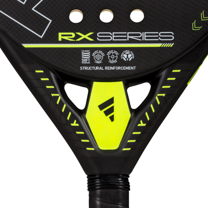 La RX Series Lime 3.4 es una pala diseñada para jugadores intermedios que buscan mejorar su juego. El poder y los refuerzos estructurales hechos con fibras de carbono en áreas clave aumentan la rigidez de la pala, incrementando su generación de energía. Además, la disposición de agujeros lineales Smart Holes agrega solidez y extiende su vida útil.